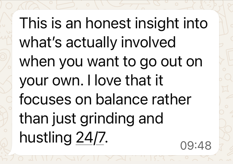 Most importantly: This isn't about "hustle culture" or 80-hour weeks. It's about building a business that works around your life, not the other way around.